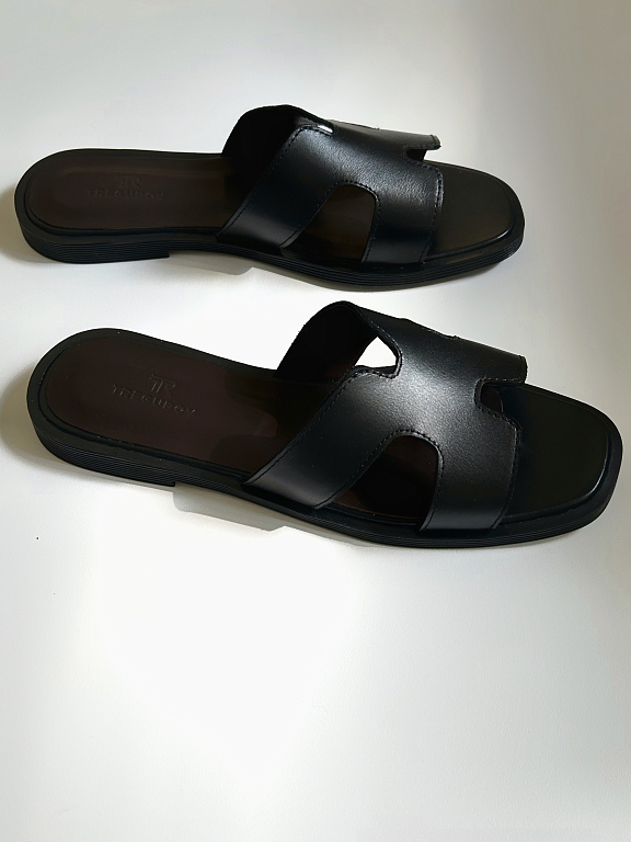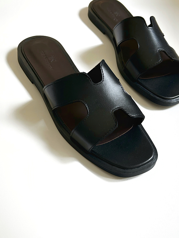 "Базовая модель, которую легко адаптировать под любой летний образ. Минималистичный дизайн делает эти шлёпанцы универсальной парой на каждый день — от города до отпуска. Натуральные материалы обеспечивают комфорт при носке, а лаконичный силуэт — стильную подачу.